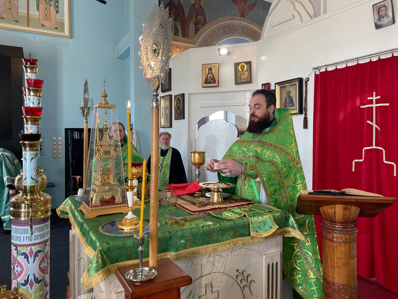 Сразу по окончании поздней литургии началось служение Великой вечерни, на которой отцом настоятелем и духовенством были прочитаны три коленопреклоненные молитвы.